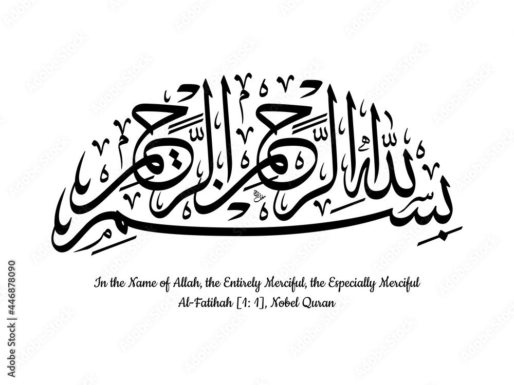 English And Arabic Calligraphy Bismillah Hirrahman Nirrahim Surah Al Fatihah 1 1 From Holy Quran Thuluth Script Style B Vector Illustration Stock Vector Adobe Stock